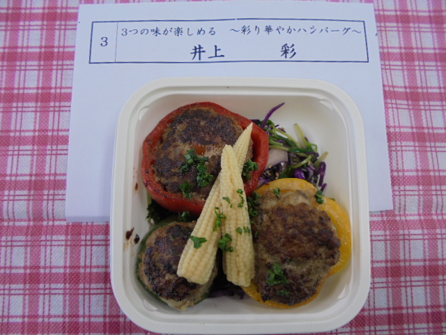 作品名「3つの味が楽しめる ~彩り華やかハンバーグ」